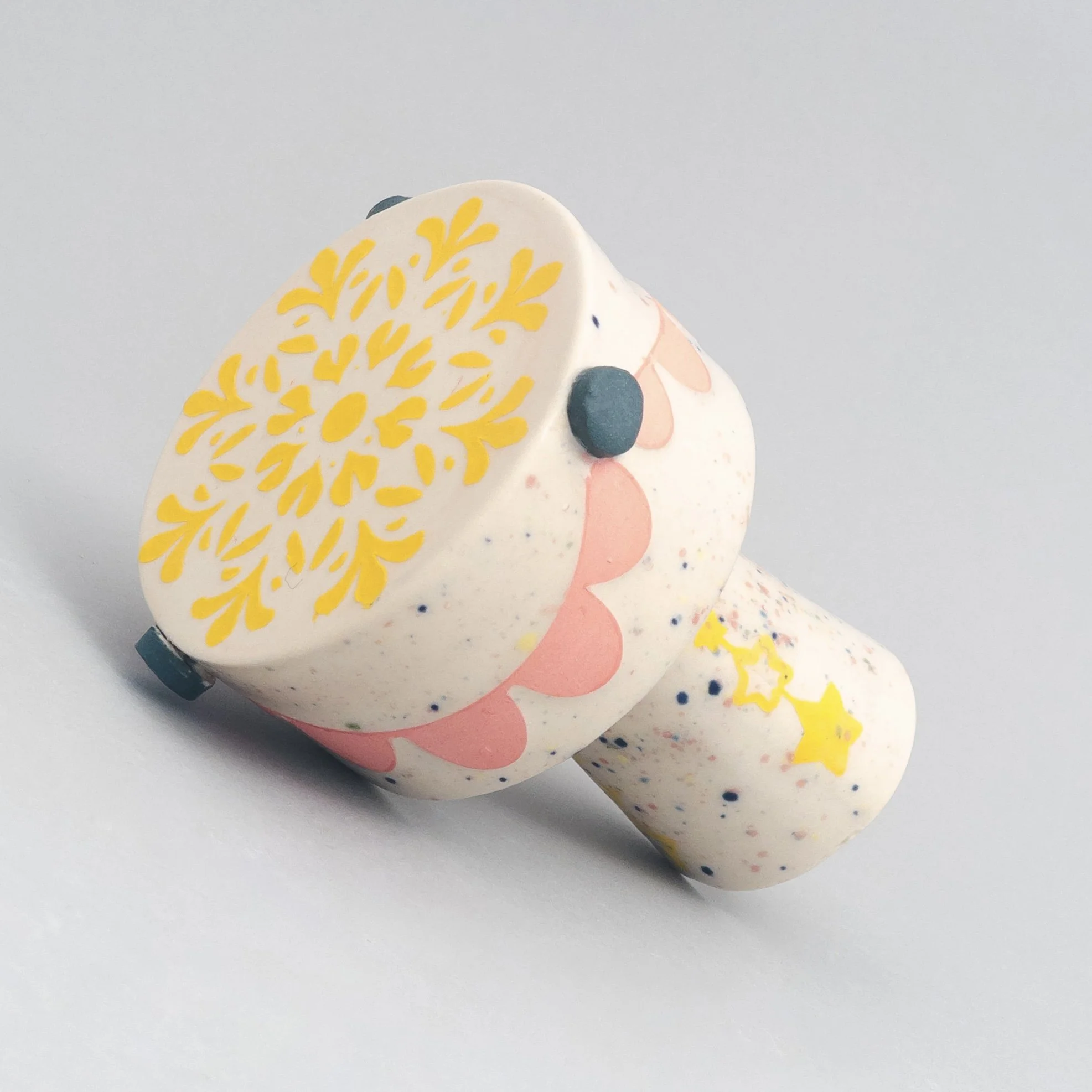 Each piece begins as a meditation on celebration and the poetry of everyday life. Clay becomes a medium for capturing moments of wonder: from celestial-inspired designs that echo New York's eclipse, playful carousel patterns born from my niece's imagination, to the quiet beauty of a single flower. Each piece tells a story.
